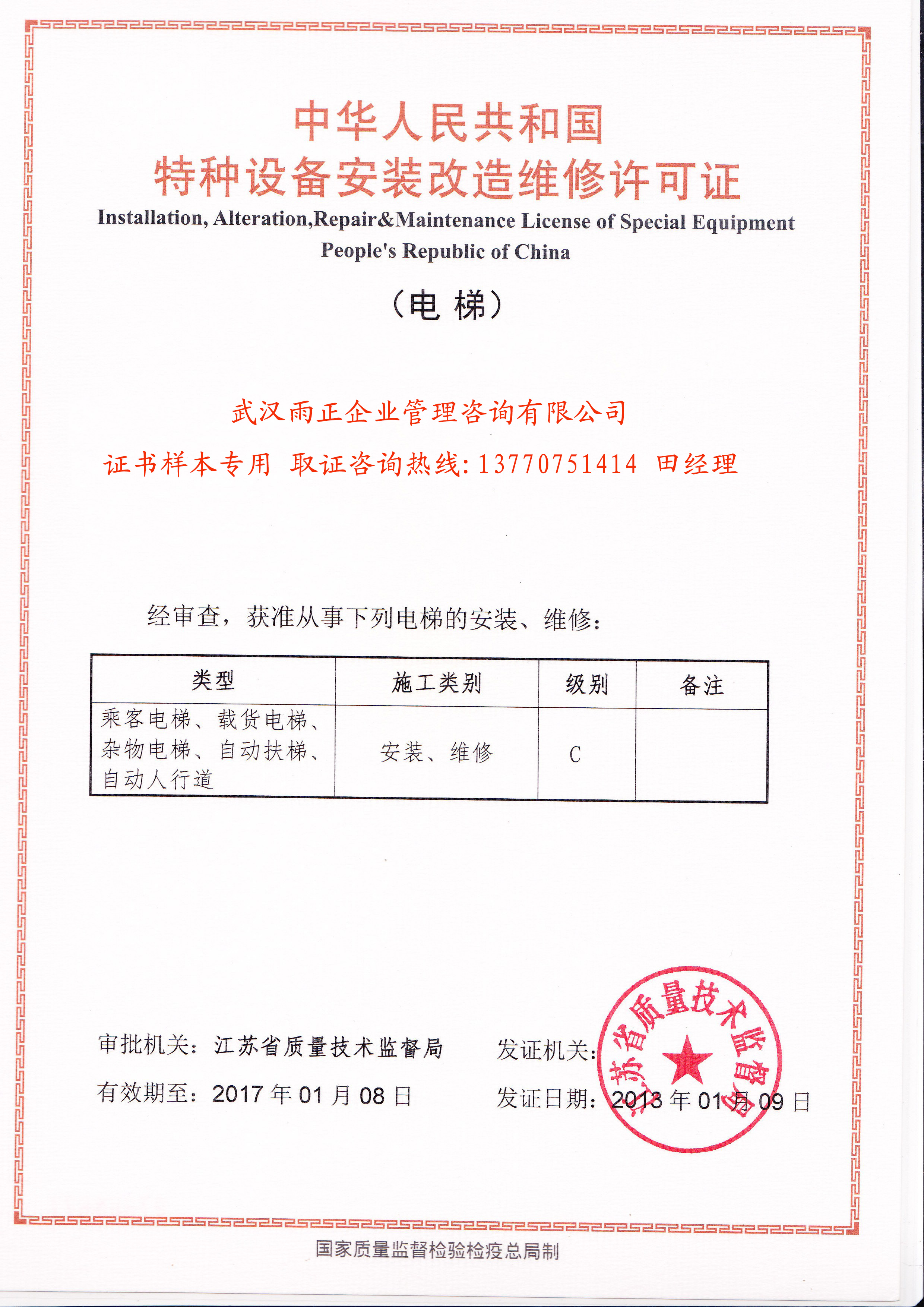 电梯安装维修许可证